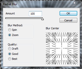 Ahora aplicamos el filtro desenfoque / radial con estos parámetros:
