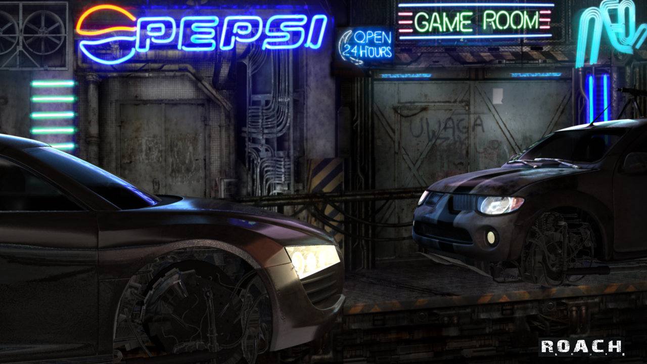 También mostramos un avance sobre el entorno creado con Maya y un boceto sobre el interior del garaje. Un saludo.