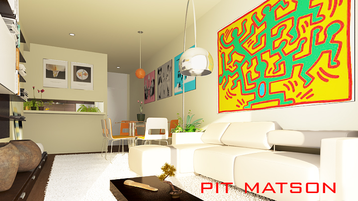 Bueno, me pareció lo apropiado para un salón de pequeño apartamento de vivienda protegida, algo de Keith haring, algo de Banksy, otro poco de Mapplethorpe en el dormitorio también pude cosas muy adecuadas si hubiese visto el delfín este antes, lo hubiese puesto en el parque infantil de la promoción.