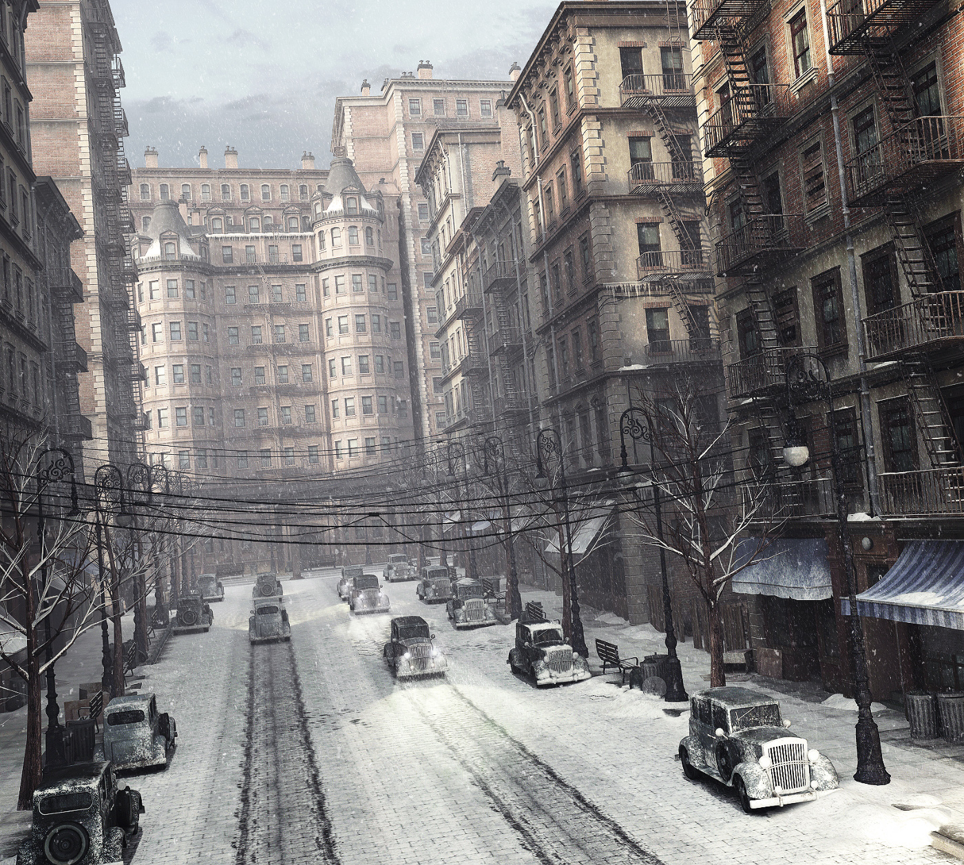 Aquí os dejo mi último trabajo personal ambientado en una ciudad americana de los años 30. Trabajo bastante arduo en la composición de la escena y en las texturas, pero creo que el tiempo dedicado a merecido la pena. Por curiosidad, deciros, que el aspecto nevado fue algo que decidí en el último momento y creo que la escena gana mucho en ese sentido. Como siempre, todo modelado en 3dsmax y texturas creadas con Adobe Photoshop. Iluminación y render con Mental y postproducción en Adobe Photoshop. Ya sabéis que vuestros comentarios siempre son bien recibidos.