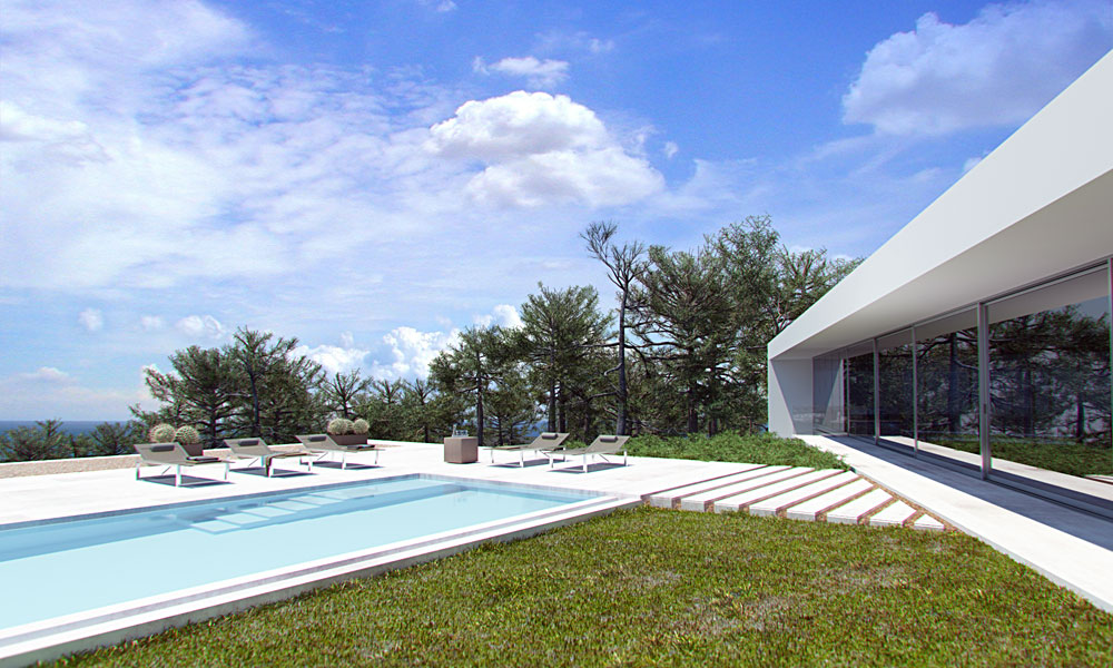 Hola Acortes: otro trabajo de gran calidad. Para que fuese perfecto lo únioc que modificaría es el evitar la repetición de los árboles y la textura de arena entre el pavimento pétreo que va hacia la piscina.