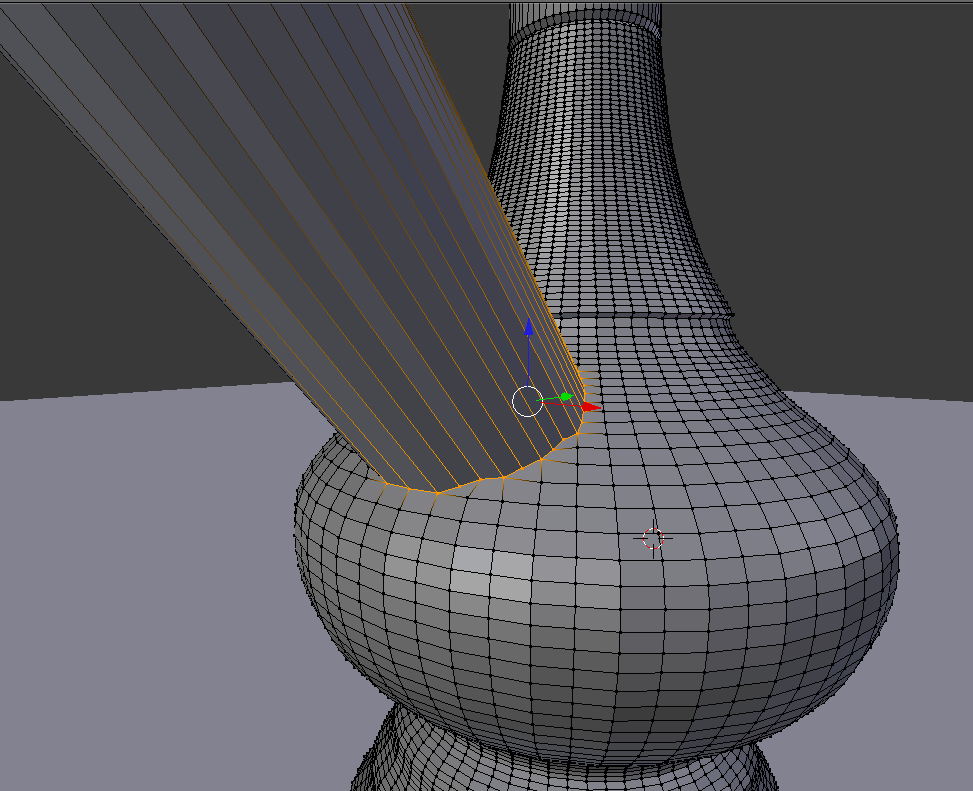 6. Con Alt + (merge) ir fusionando vértices de la pipa sobre los del círculo intentando que la malla quede lo más homogénea posible, los vértices del círculo no deben alterarse. Los vértices del interior se eliminan previamente para mejor visualización.