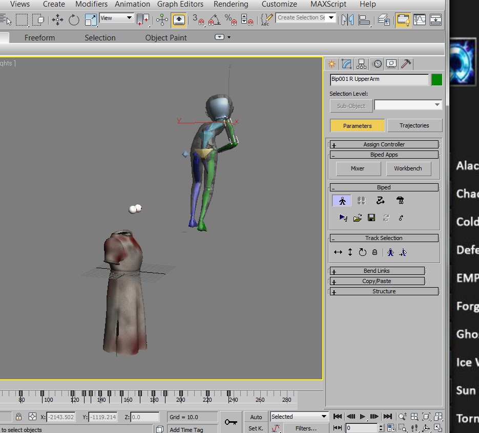 Hola a todos, tengo un problema con un Biped que hice hace poco. Tengo un personaje sin ropa con la animación terminada, la ropa y los ojos no les he modificado ni enlazando nada, el problema es que, al entrar al modo figura la animación no vuelve a su estado inicial, es decir muestra una postura de la animación. Es esto normal? Acaso no tiene que regresar a esa posición erguida con los brazos y piernas rectos? No sé si es necesario volver a esa posición, pero quiero intentar agregarle al vestido un skin y asignarle el mismo juego de huesos del personaje. Es posible esto?