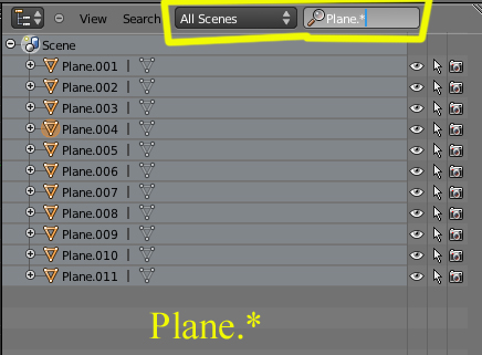 Lo que sí he descubierto, es que, sí, por ejemplo, lo que tienes repetido son planos o cubos, y todos tienen el mismo nombre al principio. Cube, Cube.001, puedes escribir en el buscar (la lupa) como si fuera código ms-dos. Por ejemplo, para que aparezcan todos los planos que he duplicado se escribe plane.* y solo te quedarán esos archivos a la vista, así es más difícil equivocarse.