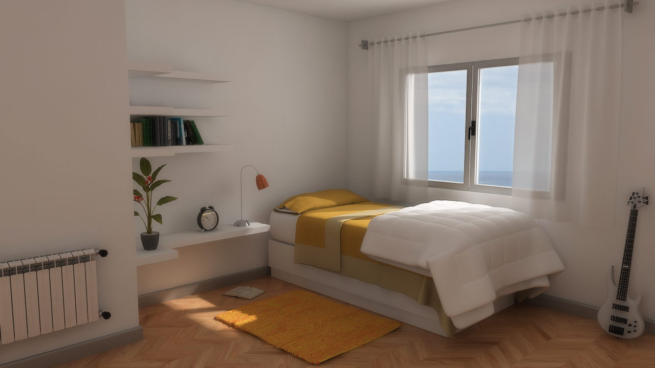 Gracias por la crítica, sobre todo por lo de caracterizar la escena. Estoy en ello. Respecto a las cortina, solo era un material provisional, estoy haciendo otro con un VRay2SidedMtl, para provocar una traslucencia en la cortina, ¿buena elección?