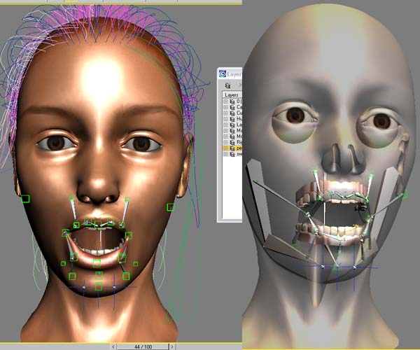 Bueno cómo se ha borrado algún que otro mensaje pongo ya el rigging de la boca casi terminado, ahora estoy con las cejas/parpado/frente y mejillas y el cuerpo en general, lo malo son las clases, en fin, un abrazo.