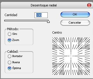 • después vamos a filtro/desenfoque/desenfoque radial y ponemos estas características: