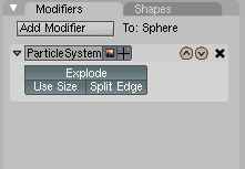 If you playback, you Will se the particle falling on the plane, todo add explosión effect, go todo editing panel (f9) and in the modifier enable explode and Split edge, the effect Will be better: