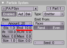 I change the mount of particles todo 20 in the actual system and change the end frame todo 10: