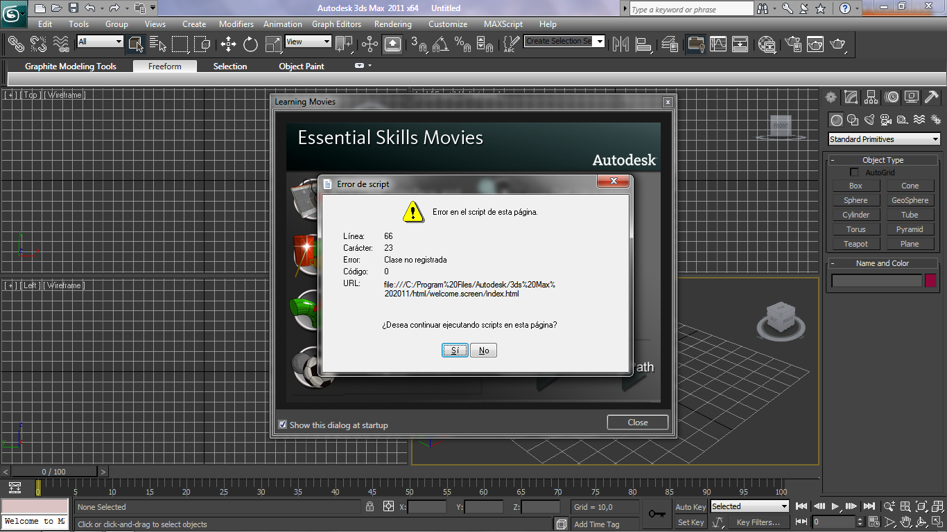 Hola buenas noches. Escribo el siguiente tema ya que tengo el 3ds Max Studio 2011 instalado en un Windows 7 de 64 bits, y lo arranco sin problemas, pero como saben, cuando uno entra al programa sale una ventana con unos tutoriales al igual que en el Maya 2011 cual también lo tengo instalado en la misma máquina con el mismo sistema.