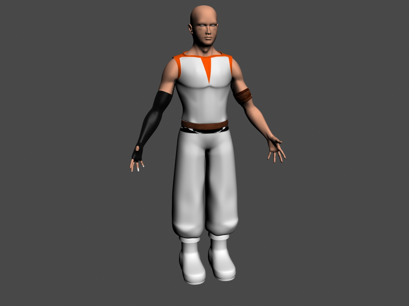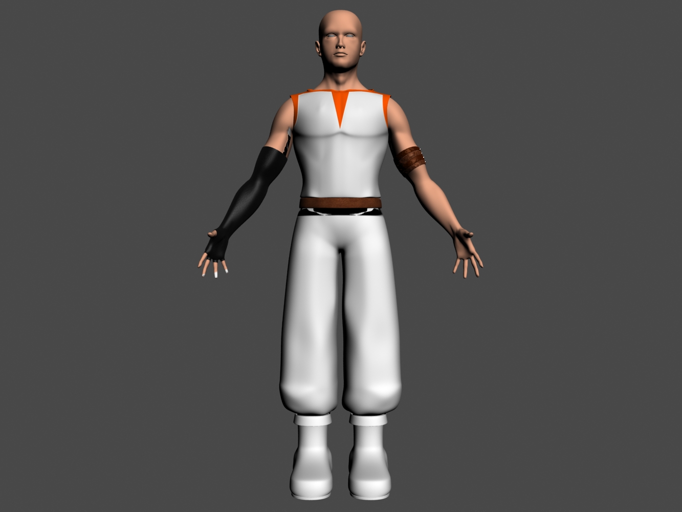 Ahora estoy haciendo el modelado del personaje. Estoy aprovechando un modelo antiguo que tenía de un chico joven. Por ahora solo he hecho la parte simétrica, ahora empezaré a dar los detalles de cada lado. Por ahora veo que la cara y los pantalones necesitan mucho aún. La capucha rara y el faldón de la camiseta no sé cómo hacerlos porque se cruzan con el modelado a la hora de ponerle los huesos. La cosa es que deberían tratarse como ropa holgada, vamos que se las lleve el viento y tal, no es ropa que se mueva con huesos y no sé cómo funciona eso.