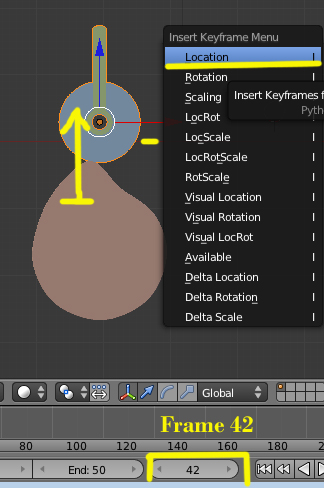 Luego cambias al frame 42 y tienes que mover la pieza visualmente hasta la punta que te marque tú objeto, presionas otra vez letra i > Loc.