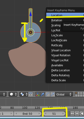 Luego frame 51 y vuelves a mover la pieza superior, bajándola hasta que toque al objeto, letra i > Loc.