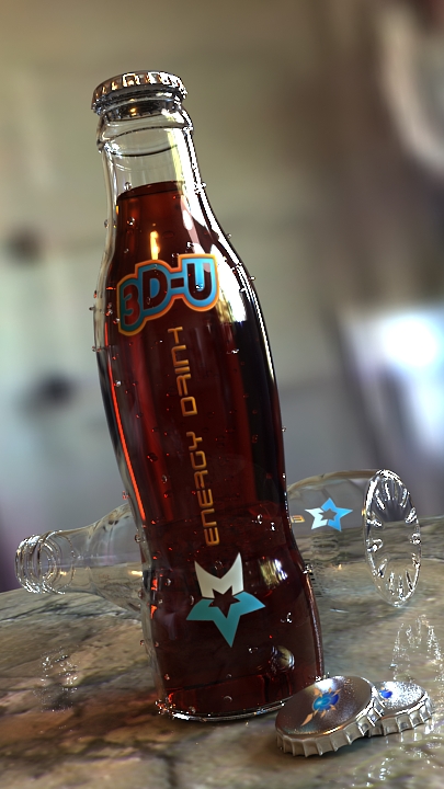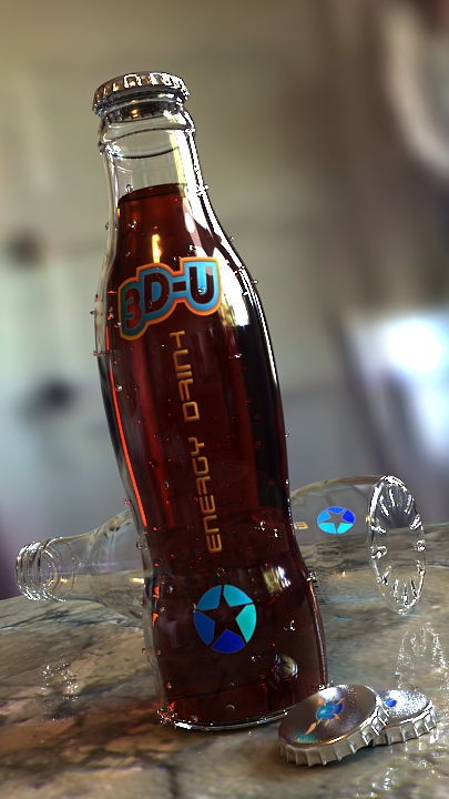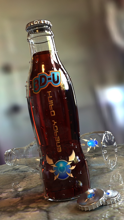 Buenas gente. Estoy haciendo una imagen siguiendo un tutorial que encontré el otro día por internet. La idea es hacer una bebida energética con el nombre de producto 3d-u que es la marca de agua que uso en mis imágenes. La cosa es que no sé que logotipo poner en la botella.