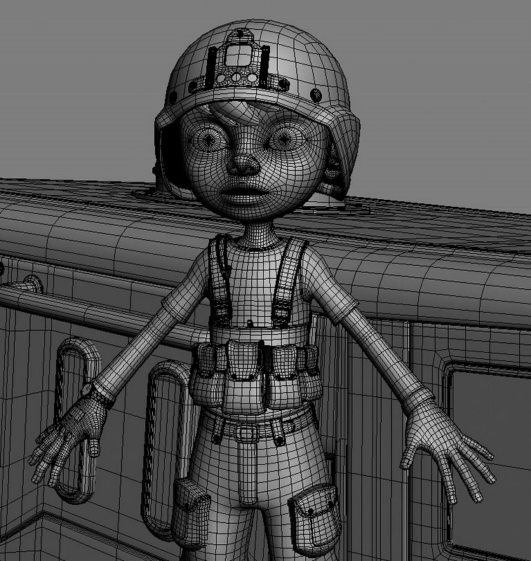 Muy bien modelado, aunque me extraña que le hayas dejado los polos de 6 aristas en las botas, por ser un poco tiquismiquis.