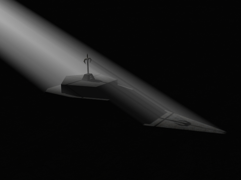 La imagen en cuestión. Quiero que la luz me haga la sombra de la espada, y que el efecto de la luz volumétrica haga los rayos alrededor de la espada. La luz, pasa por una ventana triangular, pero la luz volumétrica traspasa las paredes, y no sale de forma triangular, como yo quiero. He mirado la ayuda de max, pero no me sale lo que quiero. Bueno, pues eso, a ver si me podéis ayudar, gracias.