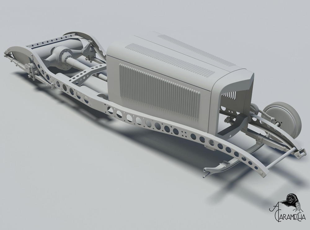 Buen comienzo, yo ni siquiera he modelado los travesaños centrales que unen el bastidor (ahora me obligaras a hacerlo).