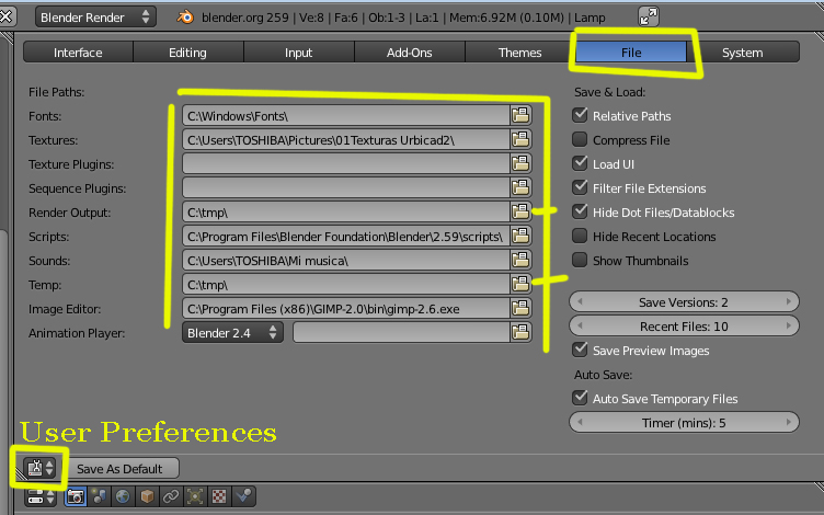Gracias por responer tan pronto y ayudarme a configurar mi Blender. Realmente estás en lo cierto que Windows 7 no permite que en determinadas carpetas se puedan guardar archivos. Me ha sido muy útil poder asignar las carpetas donde quiero que se guarden los archivos. Cuando solucionas un problema es cuando más aprendes, por esto mi agradecimiento no es solamente porqué me has ayudado a solucionar un problema si no que es por transmitirme conocimientos, eso es lo que tiene valor. Gracias Solimán.