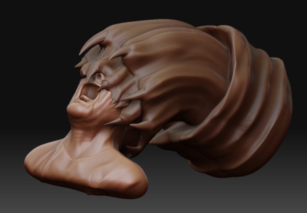 Me gusta mucho como va pillando forma. Eres un fiera con el ZBrush. Solo veo raro un par de bultos que le salen de la barbilla, no sé si será algún vértice rebelde.