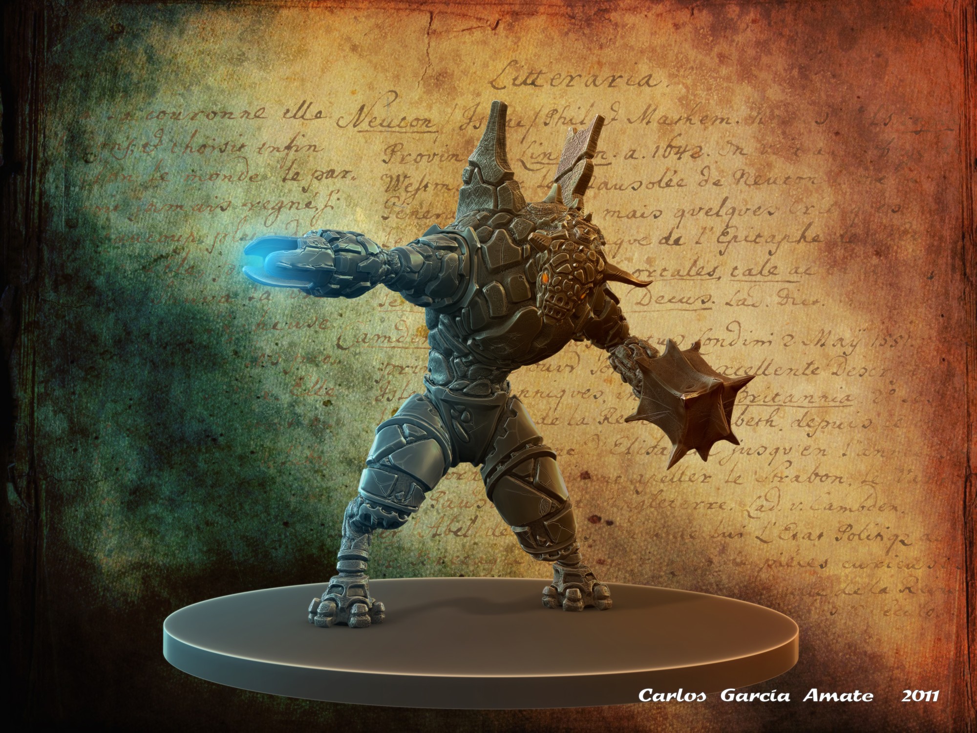 Hola de nuevo. Después de estar bastante tiempo sin publicar, les dejo lo último en lo que estoy trabajando. Es un test de prueba para Gameloft, se trata de un Golem de guerra para videojuegos. Aquí les dejo el modelo High Poly.