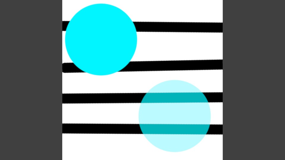En la imagen que adjunto el círculo azul de la izquierda tiene una opacidad del 100% y el de la derecha un 50%, aunque ambos están pintados sobre el mismo archivo png. Cuando se lanza el render se observa claramente la diferencia. La escena son dos planos superpuestos uno con la textura que tiene el (*.png) alfa y otro con la textura de fondo. También adjunto el (*.blend) para que podáis verlo. Saludos.