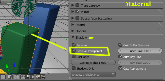 Eso pasa por lo que comente antes, en el objeto que de la sombra (tanto el suelo, como las columnas), debes activarle el que reciba la transparencia, si no, se verá todo el plano entero, aunque tengas correctamente puesta esa transparencia.