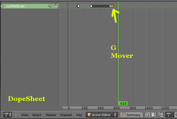Lo de mover una clave, solo tienes que ponerte en dopeshet, seleccionar el rombito de color amarillo y moverlo. Se selecciona con clic derecho y letra g para poder arrastrarlo.