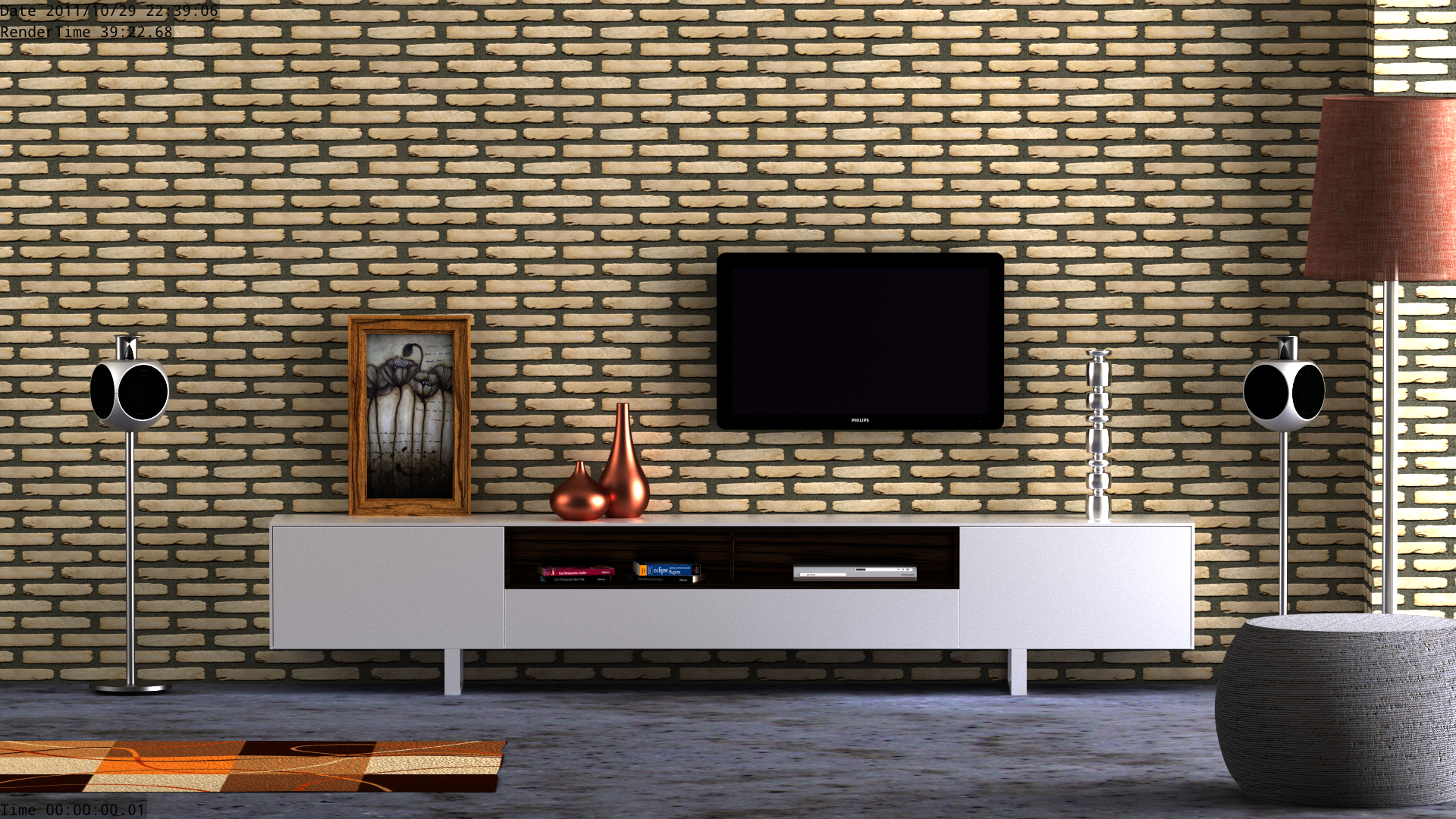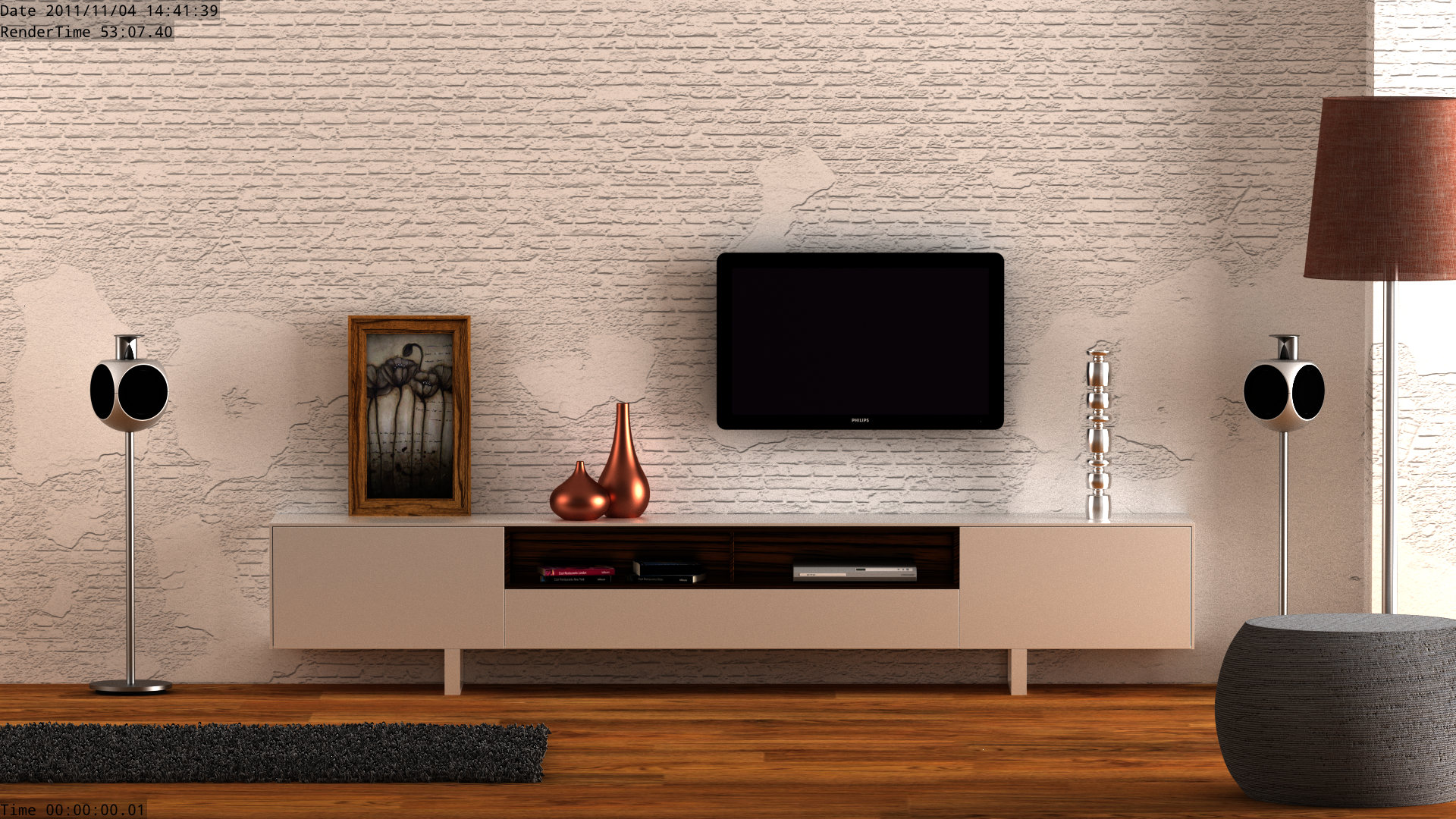 Con una gráfica GTS 450 ha tardado unos 40 minutos para realizar 1000 pases, no tiene ningún tipo de postproducción. Sé que a la alfombra le falta mucho, pero todavía no controlo Blender.