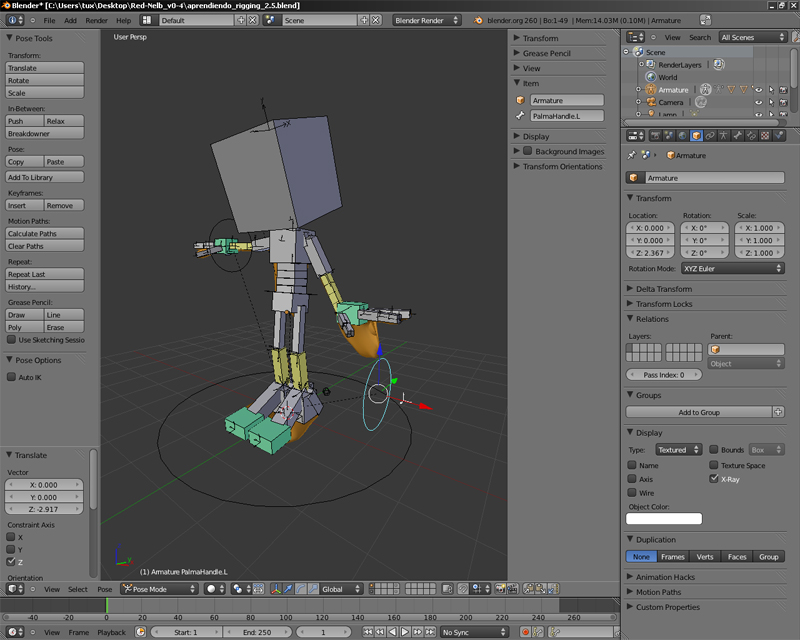 Hola. He creado mi primer rigging con Blender (en concreto la 2.60a). Soy nuevo haciendo rigging y lo he conseguido siguiendo estos tutoriales: http://www.multiupload.com/wur4972p7.