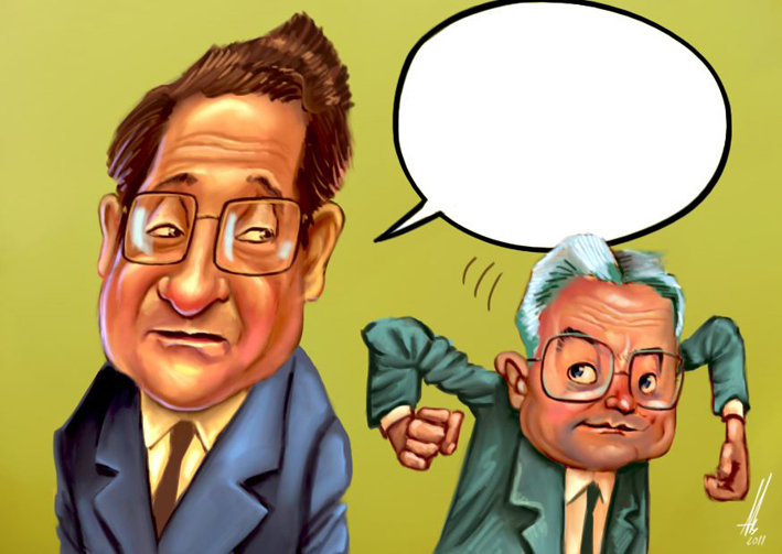 Gracias amiguetes. Ilustración para el periódico la voz de Galicia sobre un artículo que trata las inauguraciones pre-electorales, (los retratados son el alcalde de Santiago de Compostela xosé Sánchez bugallo e Isaías taboas, secretario de estado de transportes).