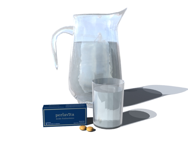 La idea es hacer un vaso y una jarra de agua. Intenté con el Vray, pero como la idea es animar esto (y no me dedico a la arquitectura), me propuse hacerlo primero con materiales de Mental Ray, y después (si bien usé el motor de render Mental Ray) utilizando materiales standard del 3d Studio Max 2011.