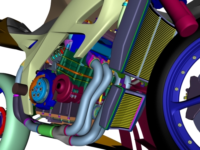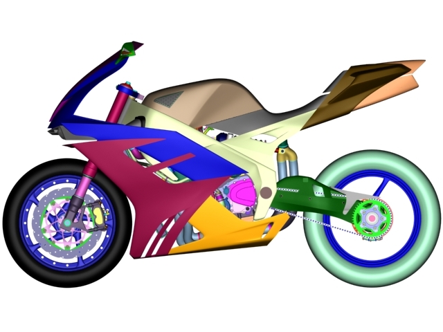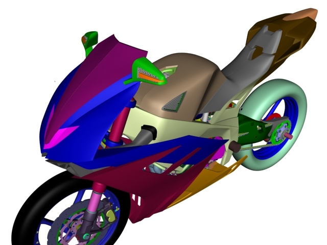 Buenas paletus, como bien te ha dicho fitz3d el basculante debería ser un poco más curvado para poder alojar una rueda de mayores dimensiones ya que para una moto de esa cilindrada se ve un poco estrecha. El resto del modelo veo muy bueno, aunque sobre la eficacia que pudiese tener. Para poder utilizar el modelo con programas de simulación o entrar en CNC, tendrías que hacerlos mejor con SolidWorks o Rhinoceros ya que, con estos programas las piezas creadas podrían meterse en CNC para su fabricación.