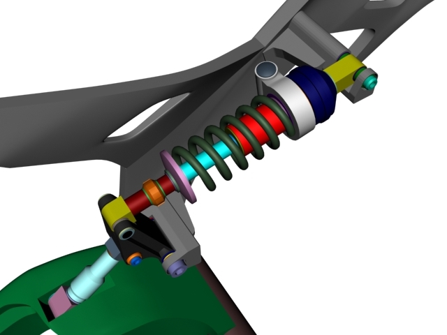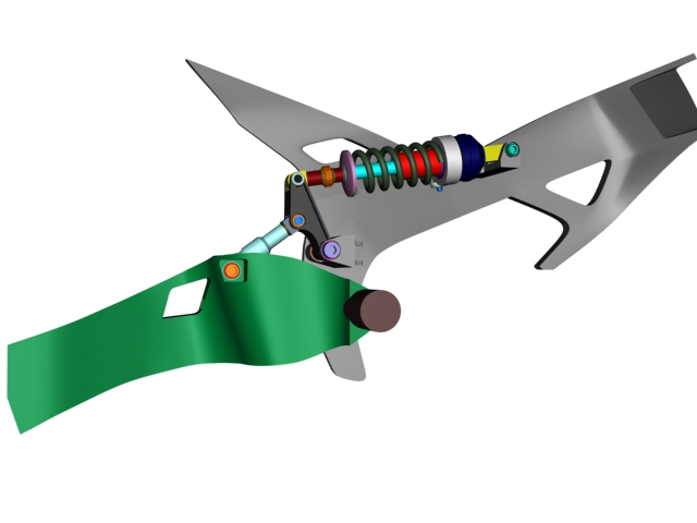 El amortiguador supongo que, es muy wip, porque este para que haga su función tiene que ir al basculante si no, solo estaría de adorno y, así como te lo veo no me da la sensación que llegue al basculante, a no ser que, con muy buen gusto hagas el amortiguador de la mejor moto del 2012 la 1199 paginale, por supuesto de Ducati.