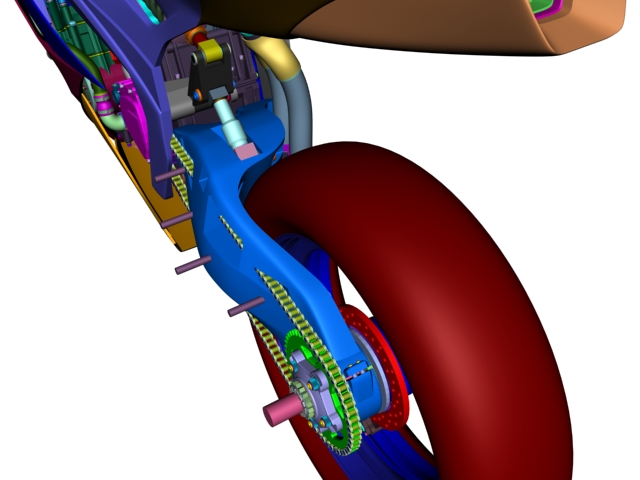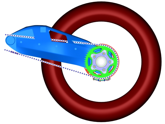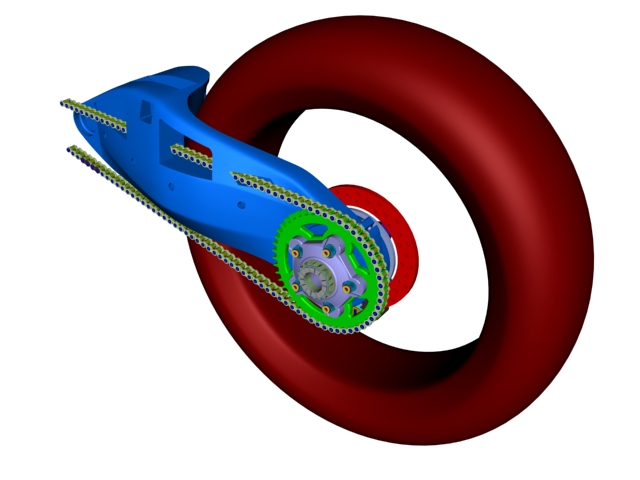 Sobre el basculante, lo veo pequeño, tanto en el ancho como el alto, sobre todo por el tamaño que tendría que tener la rueda, lo veo poco robusto y puede dejar el diseño muy colgado, técnicamente esa pieza es una de las que más caña tienen que aguantar, te paso un enlace para que veas como es un monobrazo, el de la 1098 (pedazo de burra) aunque te puedes fijar en la 848 que, aunque sea la peque (132 cv) el diseño es posterior. http://www.dailymotos.com/nuevo-basc...by-Ram-Italia/ este bicho no es el que monta la duca de serie, total solo cuesta 3000 euros de nada, aparte aquí puedes ver las excéntricas necesarias para montar la rueda que no veo en tu diseño.