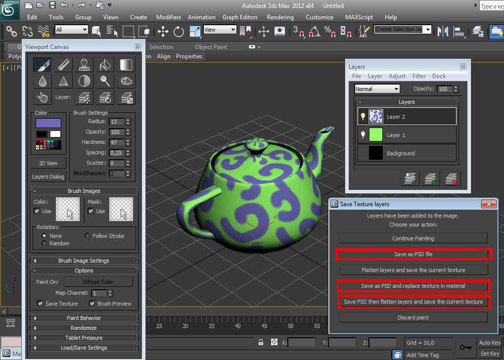 Muy buenas. Pues quería preguntaros, porque estoy texturizando en 3dsMax 2011 utilizando el viewport canvas, y me ocurre un error curioso, y es que, al activarlo y seleccionar una herramienta la textura se me aclara considerablemente, volviéndose casi blanca, puedo editarla y demás, pero a la hora de guardarla me la guarda así de blanca y aclara, y me jode todos los tonos que tenía anteriormente ¿alguna idea de por que ocurre esto?