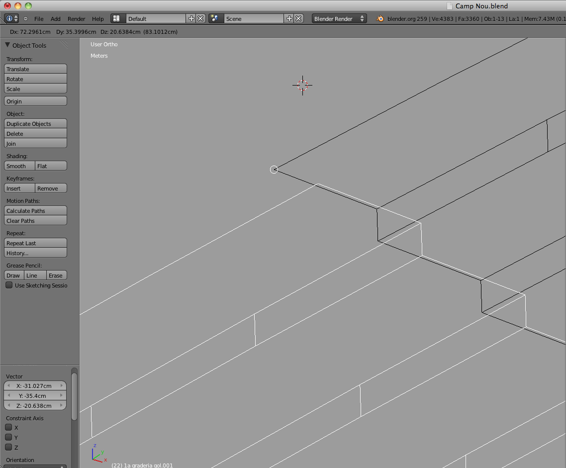 Buenos días. Adjunto un archivo de ejemplo. Quando lo abráis, veréis unos cubos (peldaños de escaleras) y el resto que sería una gradería de un estadio. Lo único que quiero es mover los cubos con el Snap para que coincidan con la gradería (ahora no están bien puestos, lo único que hace falta es un movimiento en z hacia arriba, pero con el Snap).