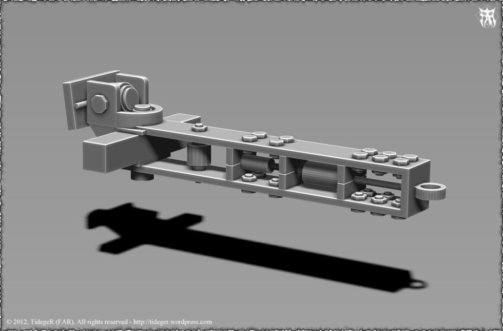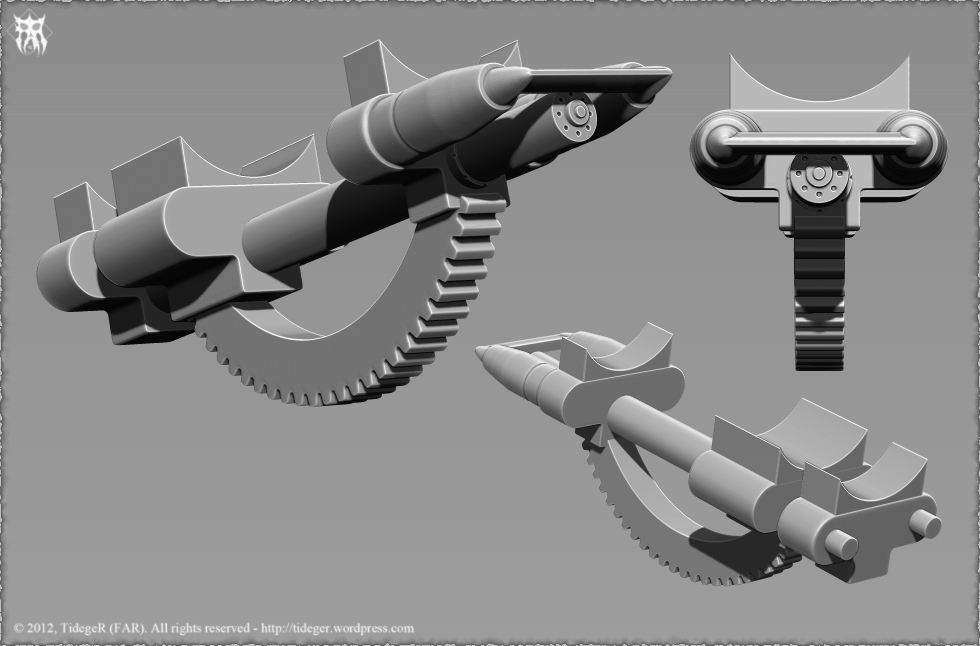 Una corrección al modelo. Los eslabones que conformaban la oruga del cañón estaban mal, ya que no tenían definido una forma de rotar a la hora de que la oruga girara, yo particularmente no me había fijado ya que en las imágenes que use de referencia no se notaba mucho eso y pues no le había prestado atención, pero un amigo me hizo caer en cuenta y me mostró como debería ser y me decidí hacer la corrección. Gracias amigo Karras.