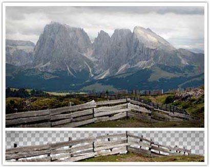 Y para terminar retocamos los elementos que colocaremos más al fondo, como las montañas más lejanas y el cielo. En cuanto al brillo, contraste, color de las fotografías, etc no me he preocupado demasiado ya que prefiero retocarlo a la hora de la composición para que queden bien unas con otras.