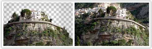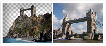 A continuación lo que haremos será eliminar el fondo de la montaña y a la colocación del London bridge en lo más alto. Esto sería en teoría lo más complicado, pero teniendo unos conocimientos básicos de Photoshop es factible, además como es un elemento que no aparecerá en un primer plano si hay alguna imperfección se podrá disimular mejor.