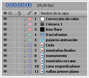 Antes de animar la cámara, esta es más o menos la disposición de las capas: