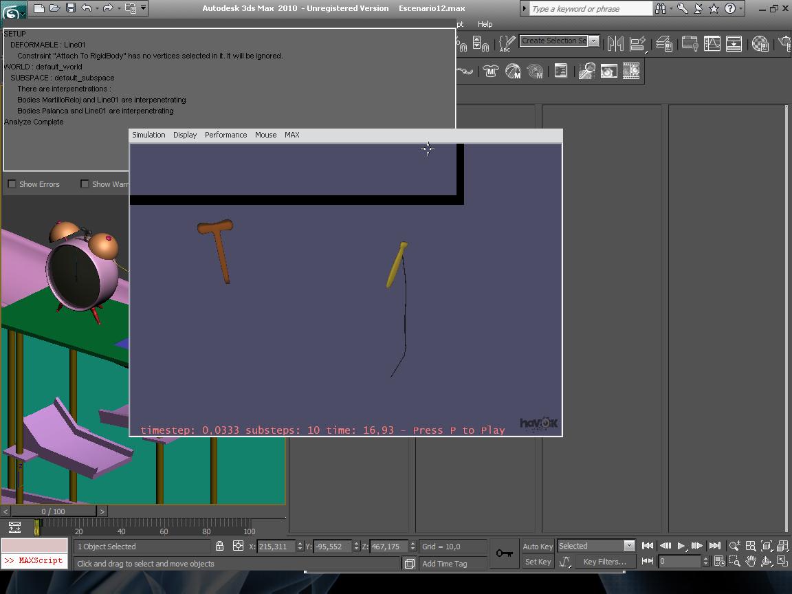 J- Reactor>preview animation. (si sale una ventana con el mensaje: there are interpenetrations: bodies line01 and sphere01 are interpenetrating, (la línea y la esfera se interpenetran).