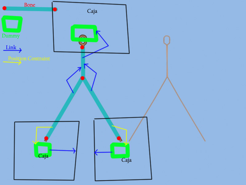 Respuesta de Ivanlobon: hola Mesh, con el modificador Enlaceed XForm. Editas la línea, seleccionas un vértice y le aplicas el modificador, te dice que selecciones un objeto de control, te recomiendo un dummie, luego vuelves a editar la línea y haces lo mismo con el vértice del otro extremo. Luego solo tienes que animar los dummies, y si quieres editas otra vez la línea para poder animar el vértice de en medio a mano o con otro dummie. De todas formas, puedes animar los vértices a mano, en teoría solo son 3 vértices.