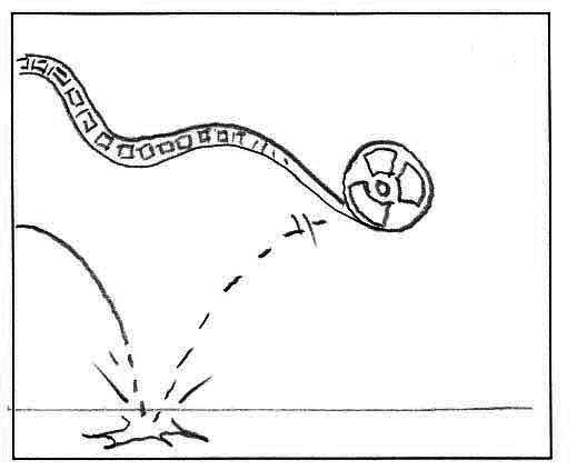 Me he fijado en un ejemplo que encontré en la red y que adjunto al mensaje para que podáis verlo. Mi animación es casi igual, pero la diferencia es que mi cuerda se recoge en horizontal y arrastra el aparato por encima del carril metálico.