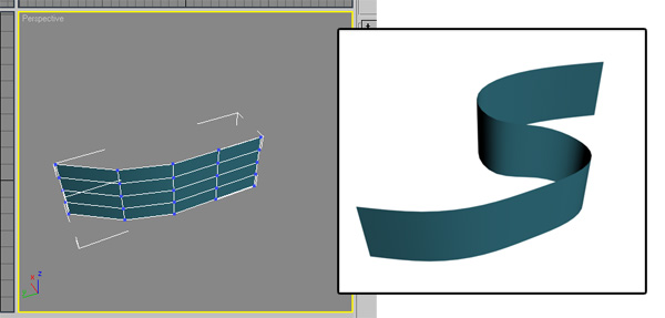 Estimados camaradas, a ver si me podéis echar un cable, quiero hacer la animación en 3ds Max 5 de una especie de cinta o cuerda que crece, me explico: tengo un plano el cual me gustaría que fuese creciendo, girando y moviéndose de un lado para otro, si miráis la imagen que adjunto igual os queda más claro. Lo he visto en varios videos y no me cosco de cómo hacerlo, al menos si me podéis orientar un poco, os lo agradeceré enormemente. Gracias.