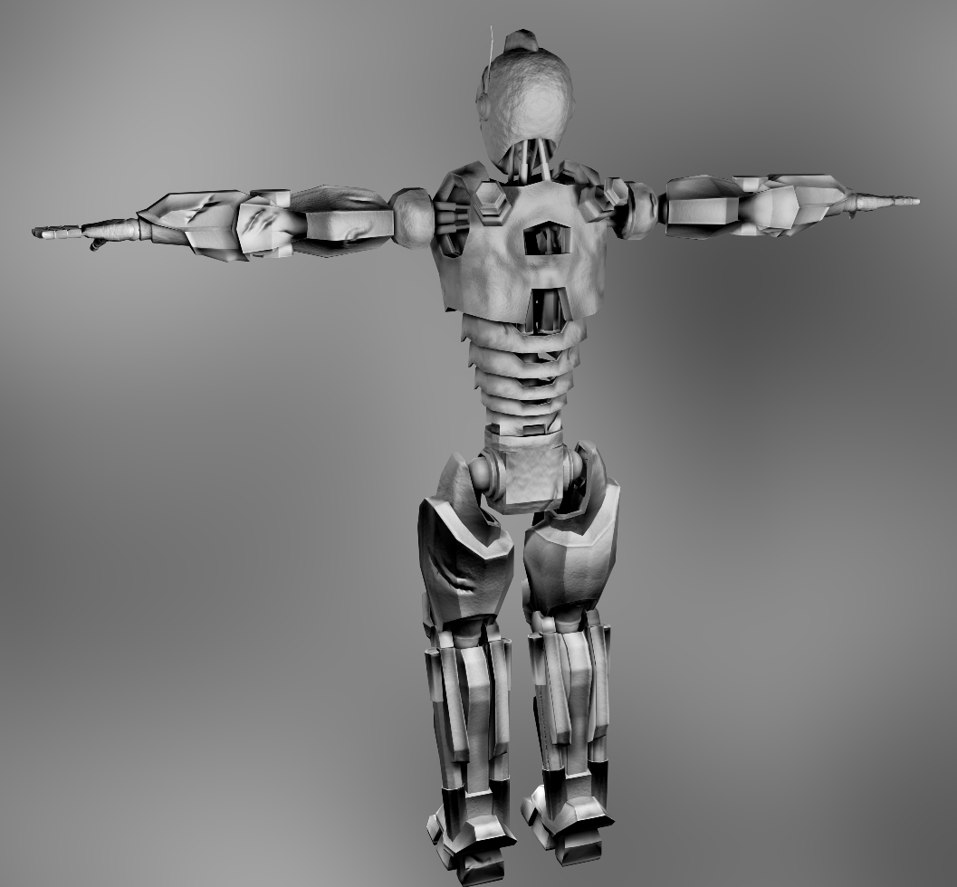 Buenos días. Estoy realizando el protagonista de un juego tps indie. Les cuento, avanzado ya el escenario, personajes, enemigos, props, etc. Ha llegado el momento de definir la estética del juego y lo único que tengo claro es que queremos una estética futurista, limpia, blanca, con mucho reflejo y mucho Glow. Dicho esto, las texturas del protagonista están un poco en el aire, hemos estado realizando pruebas de color y demás, pero no consigo encontrar lo que buscamos. Quería colgar aquí unas imágenes del robot con las normales para que pudieran ayudarme un poco. En cuanto a la historia del prota, el robot es una especie de robot-mecánico, pero que a lo largo del juego va recogiendo armaduras y acaba siendo más soldado que mecánico a causa del trasfondo del juego, tenía en mente una textura blanca con reflejos un poco eve de Wall-e, pero quizás con unas rayas discontinuas negras por ciertos sitios, se les ocurre algo? Me resulta difícil darle el toque mecánico.