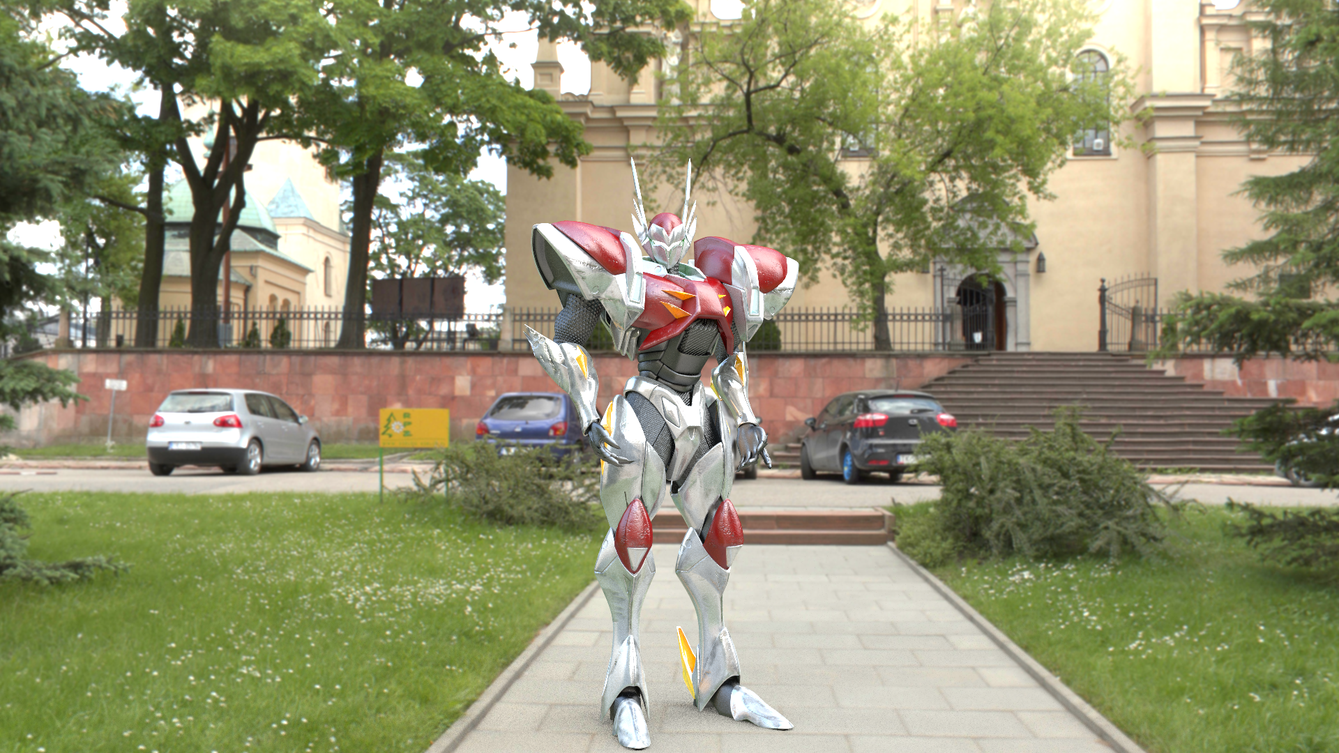 Hola, el modelo se ve muy bien. Solo que la integración en el paisaje no está bien lograda. El robot no proyecta nada de sombra y se ve como pegado en la fotografía. Debes tener presente que al integrar debes usar las distorsión de lenta, la profundidad de campo y otros elementos que se producen cuando tomamos una fotografía. Esta en un lugar muy seco y no los distorsionaste nada, o al menos muy poco, trabaja más en la integración.