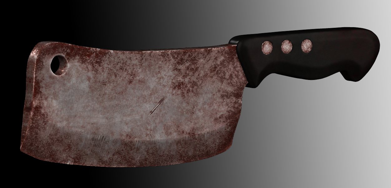No se mucho de este programa, pero si de cuchillos, y un buen carnicero jamás dejaría que su hachuela llegara a ese estado de abandono con sangre eso sí, pero jamás oxidada o sin filo. Pero el modelo está muy bien. Saludos.