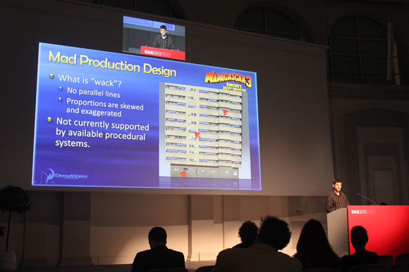 La tercera entrega de magadascar, una de las premisas de DreamWorks a la hora de crear esta película, era crear elementos de proporciones exageradas y no utilizar líneas paralelas, dejando de lado cualquier sensación de un mundo coherente. Aunque en la película los protagonistas se desplazan por varios destinos internacionales, el corazón de la película se ubica en Montecarlo, para recrear los edificios se creó una herramienta llamada mod facade, capaz de almacenar los componentes individuales para crear edificios fáciles de montar.