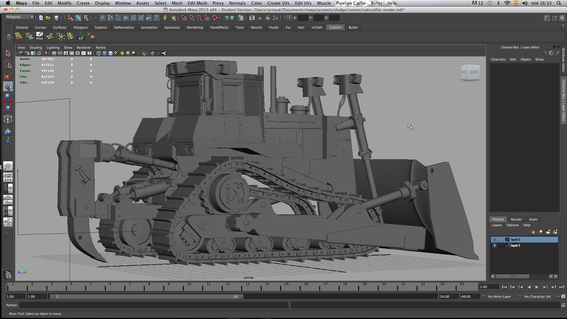 Cuando me dió por tirar un render con Mental Ray en grado 3 cuando lo tenía casi acabado me peto el Maya.