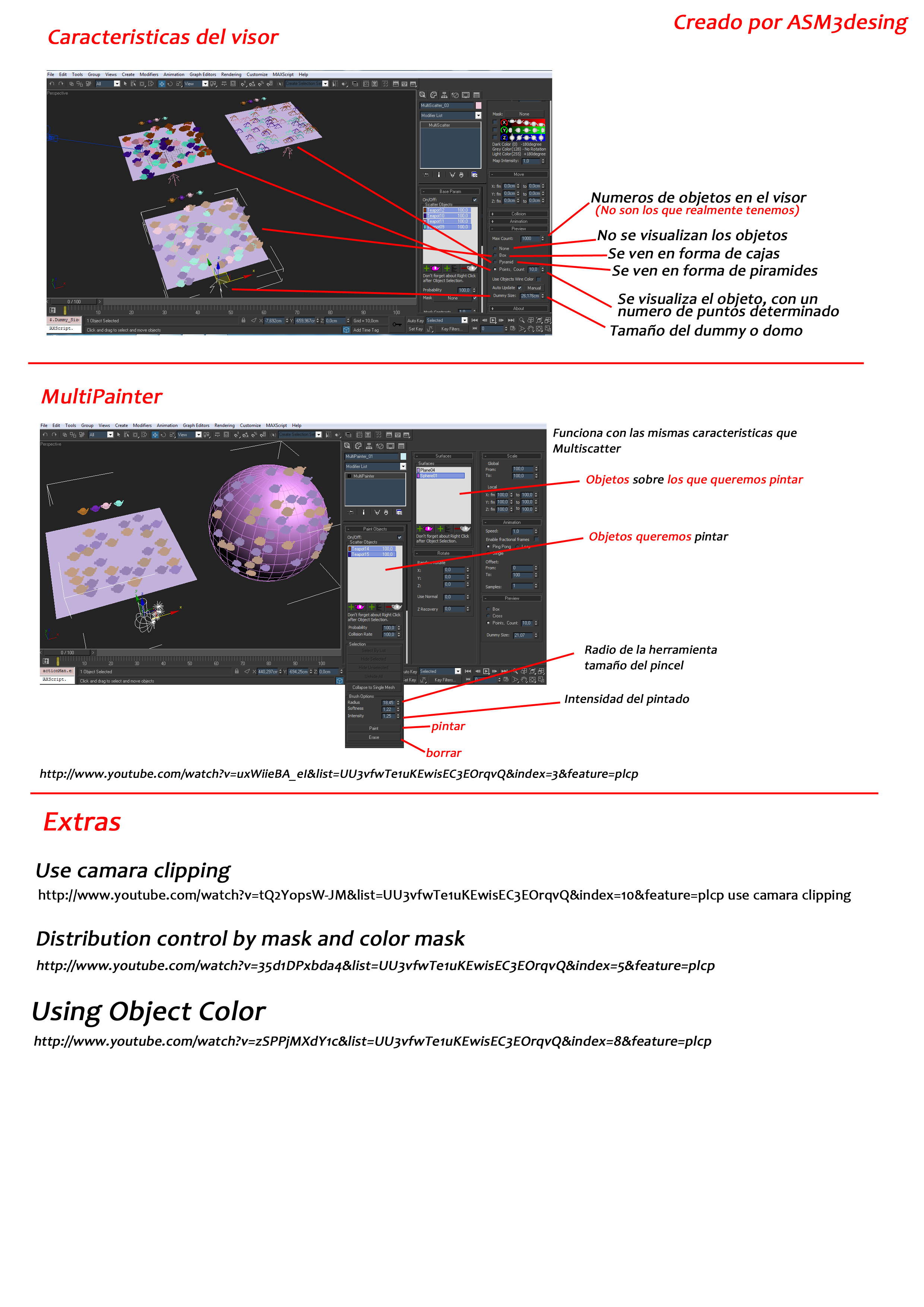 Esta guía se conforma, de un tutorial compuesto por capturas de pantallas de cada uno de los pasos necesarios para la creación de una escena con multiscatter, en cada captura he querido ir traduciendo cada parámetro básico, así como en alguno de ellos dar una explicación de su funcionamiento, para de esta forma agilizar el trabajo de esta herramienta. Para más información de este plug-in podéis consultar mi blog asm3desing.
